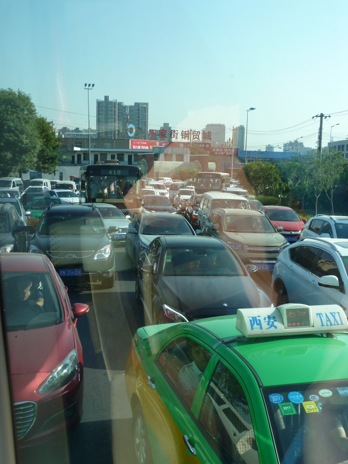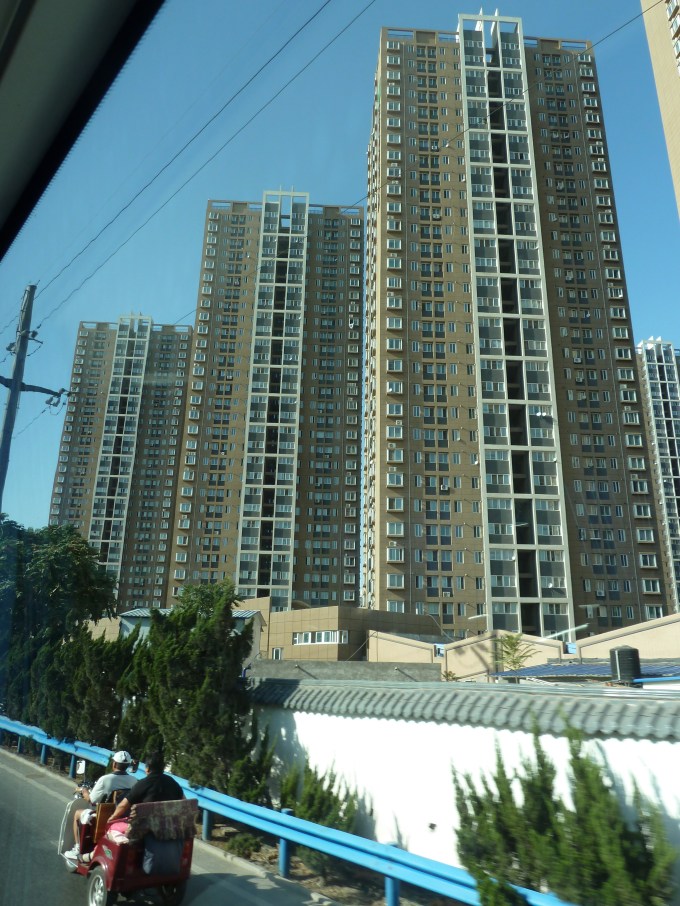 This tour only came to Xi’an to view the TC soldiers, but I have discovered much of interest here. One thing is that this city appears to be much newer than Beijing but has a population of 12 million and growing rapidly by the looks of the housing development I see from the bus. They are building EVERYWHERE! And there’s not a single family house in sight. It’s miles and miles of high rises. But it’s so different than Tacoma. In Tacoma, someone plans a new building and it’s a single building, maybe 10 stories, and the News Tribune writes an article about it, and they have trouble renting the units but eventually it gets filled up. But here, I think there’s a lot of pressure to build (but no homeless people that I can see, not even driving through town at our 3am arrival last night) and so they build 10 and 20 high rises at a time in mostly similar architecture and as they build them I believe the population is simultaneously outgrowing them. It’s really quite unatrractive, I have to say: