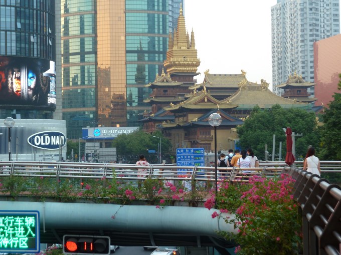 In terms of actual travel details, I cannot offer much yet. Shangai is perceptibly different than Beijing and Xi’an. Beijing has a very old and sort of third world feeling to it and Xi’an is somewhere you visit once to see those soldiers and then never return. Shanghai feels more cosmopolitan. It’s a funny mix though. Here’s a Buddhist temple right by our hotel, and it sits right in the middle of this big shopping district…I really love the positioning of the Old Navy store.