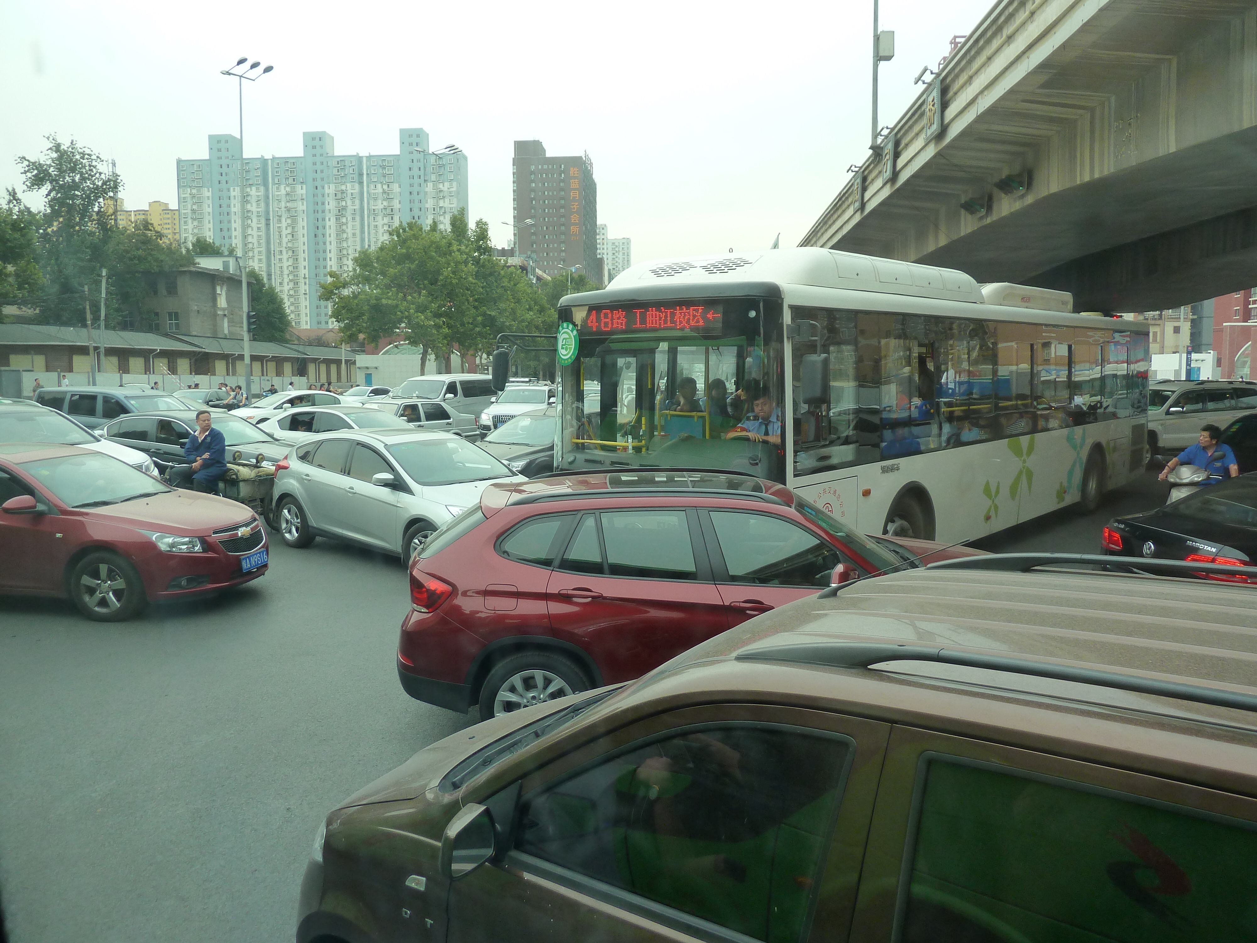 And here’s some traffic in either Xi’an or Shangai…can’t recall…but look at the bus next to us…what the heck was that driver thinking? At least everyone else is going the same general direction: