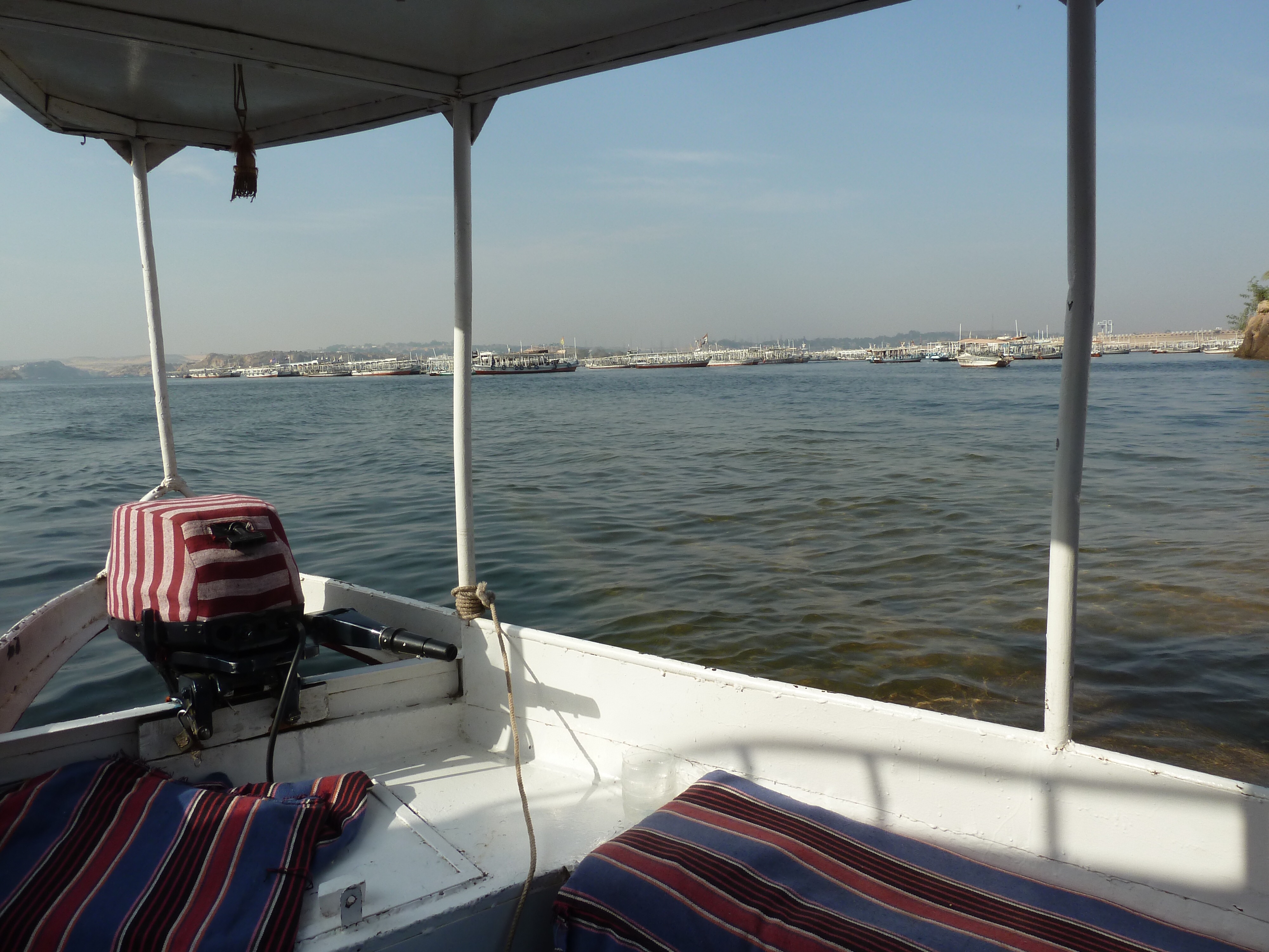 Today we went out to the Aswan Dam and then over to the Temple of Philae. At the Temple, I found the first stress-free shopping we’ve come across, where you could wander a little bit, look at things, ponder a purchase without feeling like you want to run off. I used my comfortable freedom to purchase 3 ice cream bars – 20 Egyptian pounds each – about $1. Emboldened by my success there, I purchased this funky looking Egyptian Snickers: