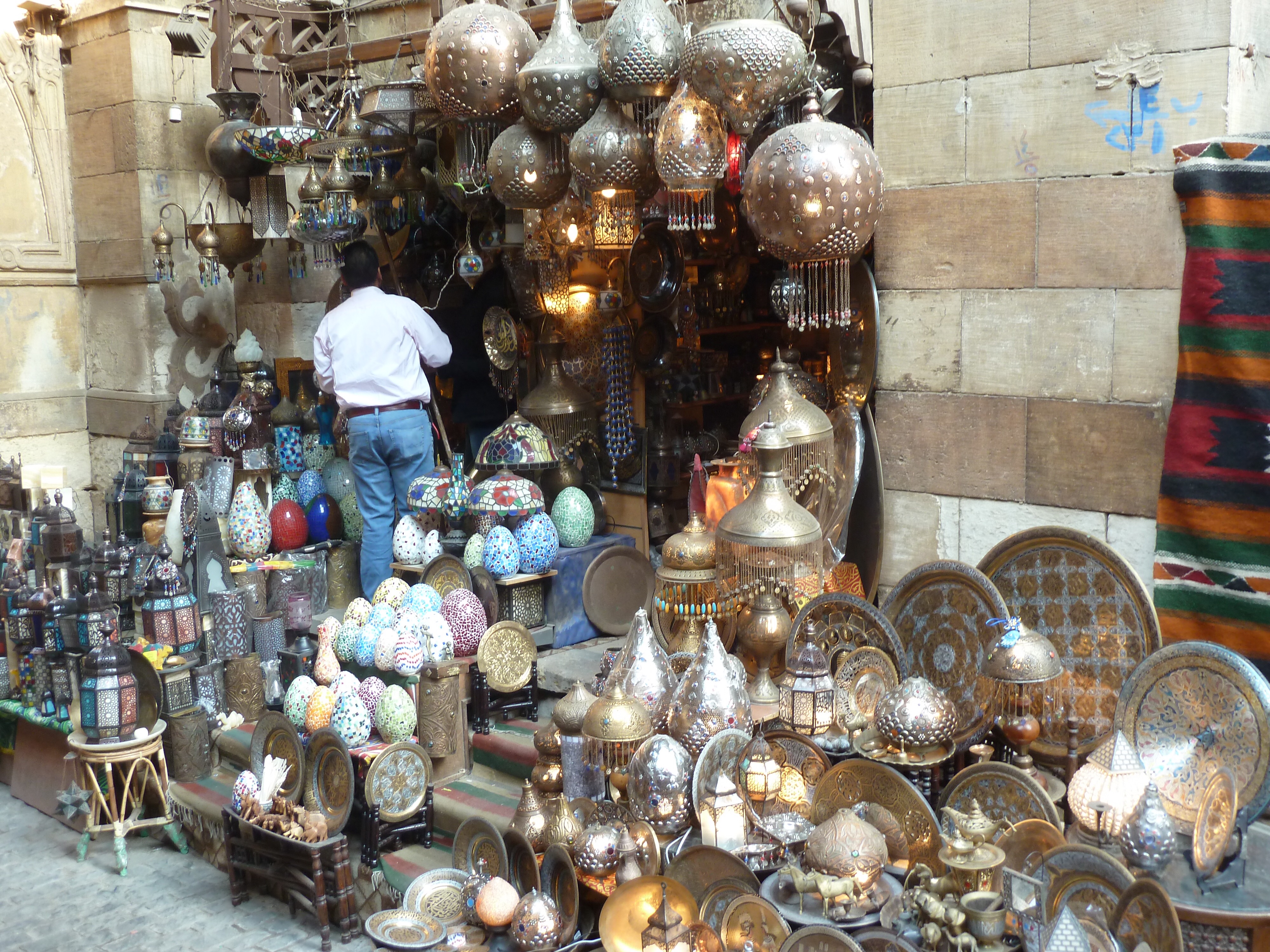 We spent awhile at the Khan al-Khahili market in Cairo as well and I wanted to buy a lamp but held back due to our 8kg luggage limitations.  But look at these things: