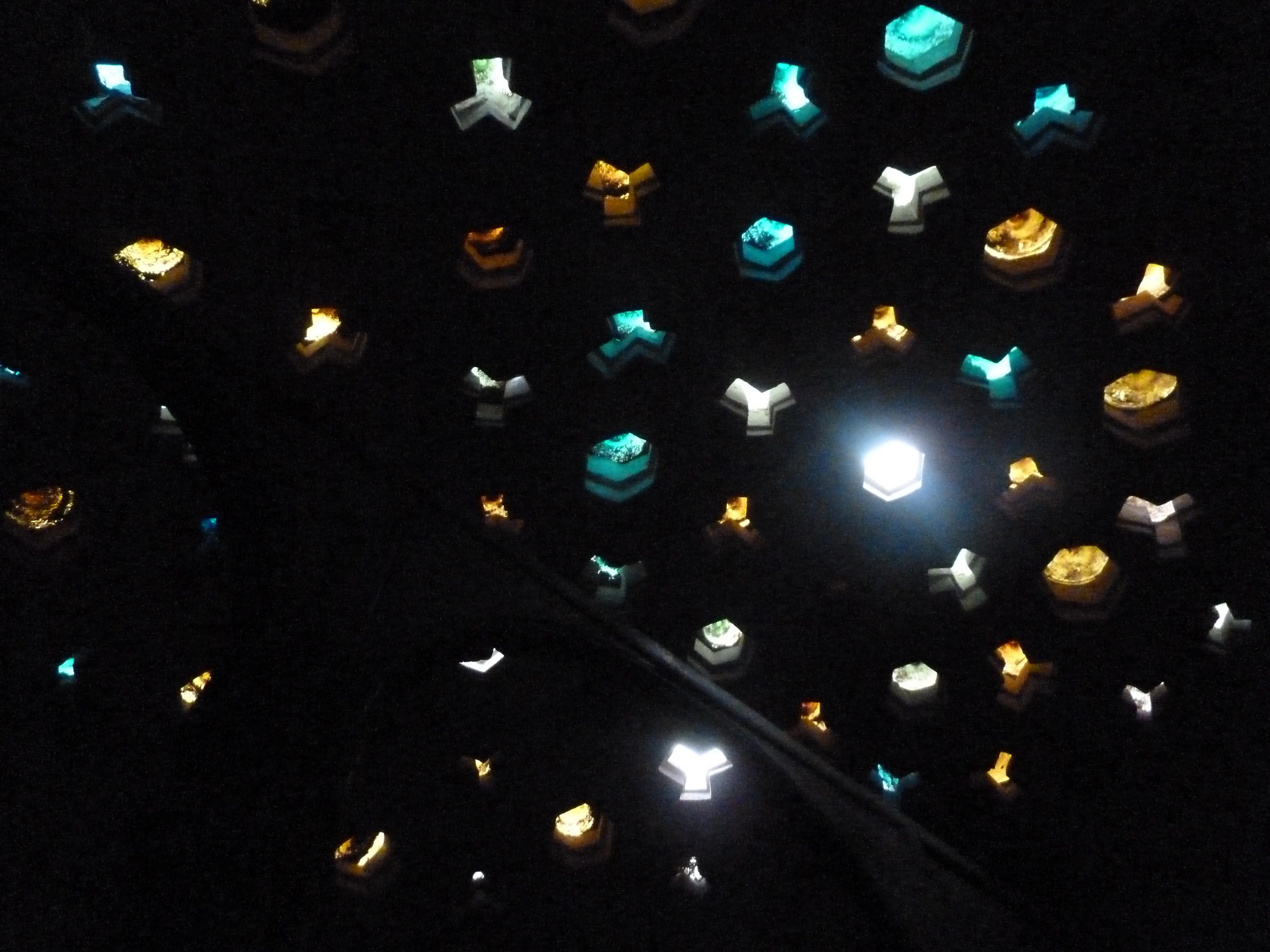 Even better, this place is under renovation and so a lot of it is closed.  But we were back with Marwa the wonder guide and so she got one of the employees to take us upstairs and show us around.  So it was decrepit in parts, under renovation and not lit.  But our professional guide showed us around with the light on his iPhone and it seemed safe enough, given the other safety violations we had already taken part in traveling around Egypt.  The place was so cool.  There was a 17th century indoor sauna room with a stained glass ceiling – the glass was arranged so that the ceiling looked like the night sky: