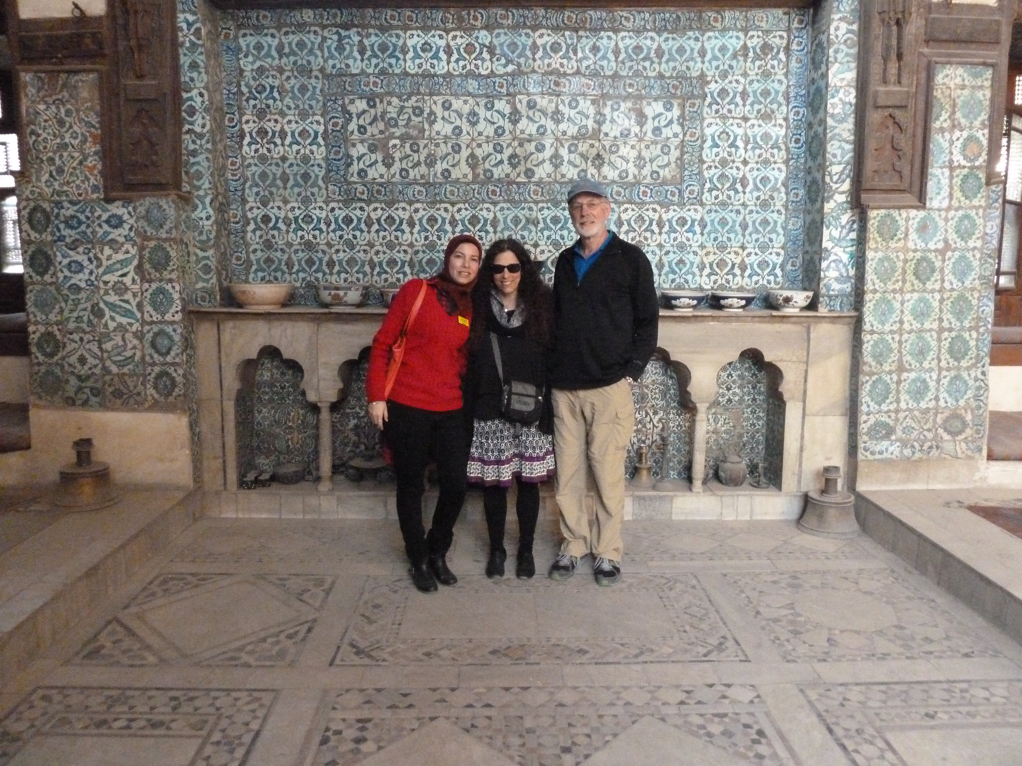 And there was this “Women’s Room” below, a place for women to hang out and relax unbothered, but Marwa and I let Ron elbow his way into this shot.  Look at that ceramic tile on the wall…it’s 450 years old and in perfect shape.