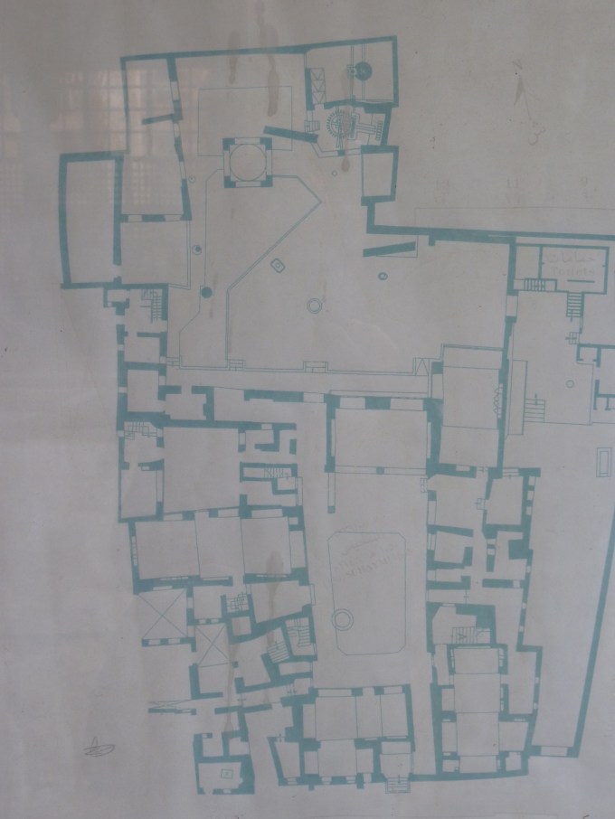Our last day in Cairo was another one planned by me, which meant that we toured old houses.  We went to the Gayer Anderson Museum, which is two houses in Old Cairo, joined together by this British guy (Gayer Anderson), who was British, but loved Egypt, and so he settled himself down here and started collecting odd items, which are now on display.  We saw his comb collection, his birthing chair collection and an odd little collection of women’s pedicure shoes he must have liked.  The houses are built in the 17th and 16th century (one from each, joined together by a sky bridge he built).  Use of the camera was an additional $3 so you’re going to have to settle for pictures of the other house we saw: the House of Al-Suhaymi, 17th century.  It was a crazy maze of rooms – here’s the floor plan/fire escape route, but I think you’d be toast, especially if you’d had a beer or two: