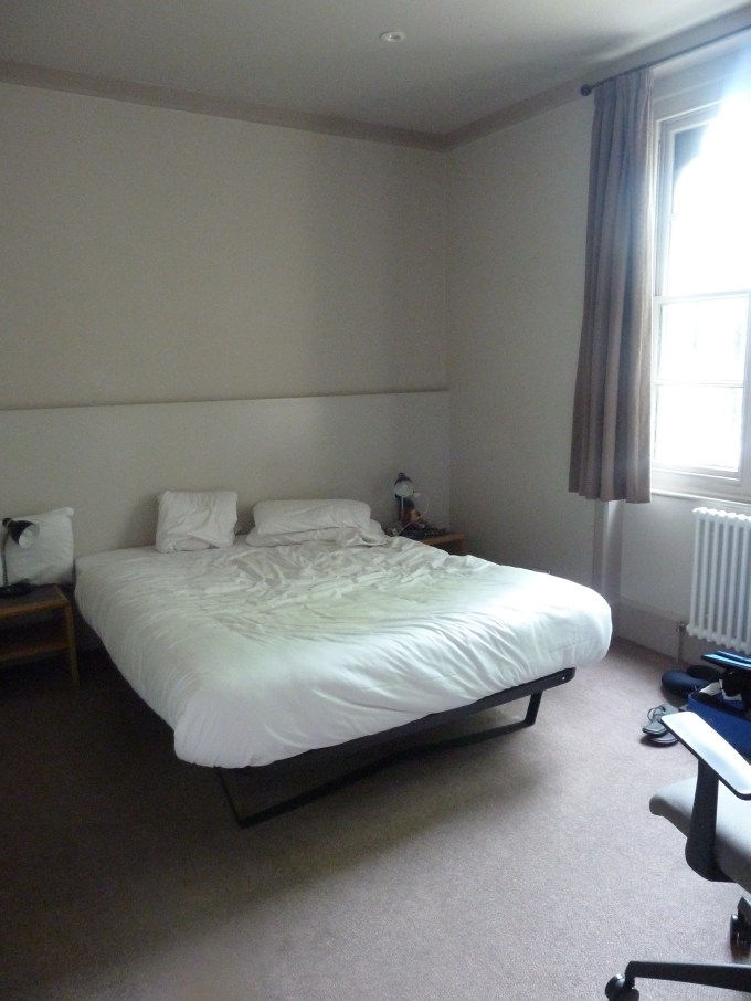 When I was planning this trip, I ran into a lot of trouble finding affordable lodging in Oxford, and so I went with the idea of booking a dorm room for the two nights we are here. The TripAdvisor reviews of this Keble College place were pretty good, and described the dining room in glowing terms and the grounds as palatial. I’ll need to remember to intuit out a little more from reviews like that as they must surely mean something like the rooms are so small and spartan and the beds are so full of springs poking out and the mattresses dip so significantly to the middle that we opted to sleep in the dining room and use the courtyard as a living space. Here’s our digs: