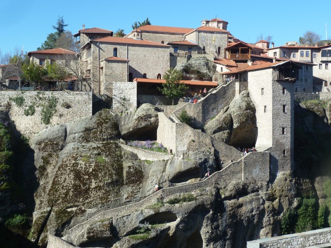 We saw every monastery and nunnery in Meteora. Most required 15 minutes walks in, up crazy staircases carved out of the rocks. It was 80 degrees here today – in March! It would be tough in July.