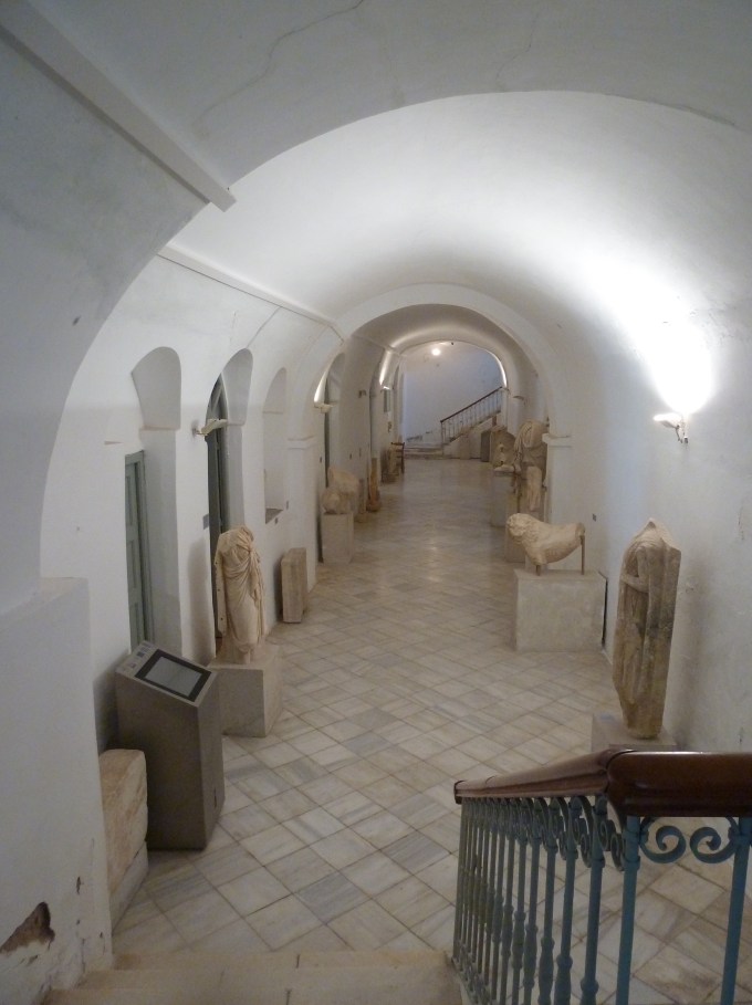 Naxos is your typical Greek island – whitewashed and beautiful, with a main town on the harbor. We’ve done virtually nothing but wander here today. Tomorrow we have a local driver coming to pick us up and drive us around – it’s actually a large island with limited tourist visits vs. a place like Mykonos or Santorini. There’s a lot of farming and tons of marble – there’s so much marble that it’s used recklessly – in one decrepit yard I saw a marble picnic table. Here’s the inside of the archaeological museum – all marble:
