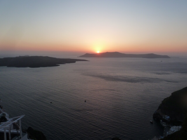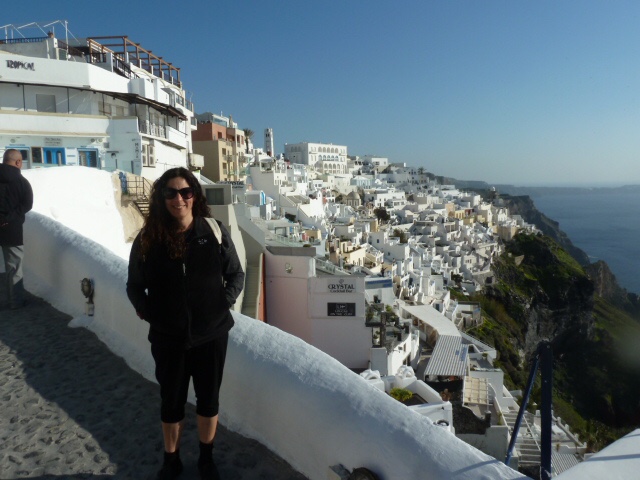 It is our travel habit to end up somewhere spectacular and just sit around for a day or two. We’ve done Taormina on Sicily and Positano in Italy. For Greece, we chose Santorini. I think it might be crazy in July but in March it’s just fine. Here’s the view from our balcony. If you’re reading on a phone, tap the tiny pic below and a video will play.