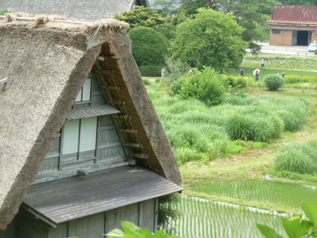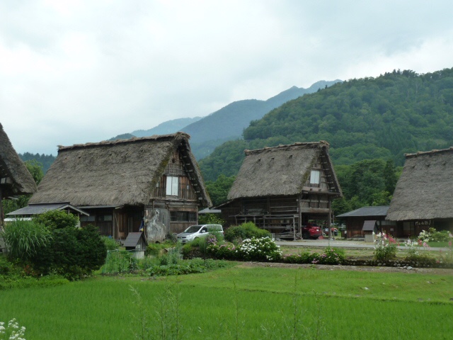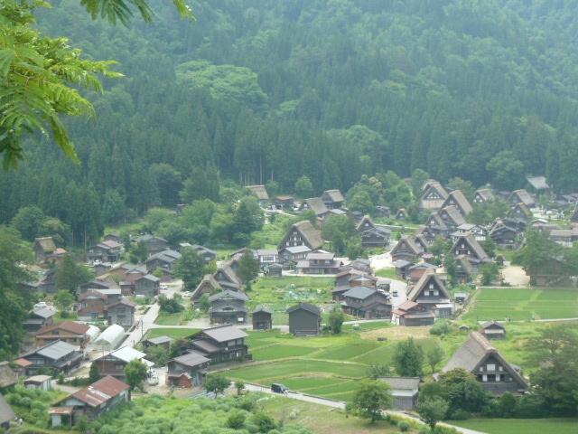 On our way to Takayama, we stopped at a UNESCO World Heritage site called Shirakawa, famous for Gassho houses. The houses are thatched roof structures, each with a roof about 2 or 3 feet thick. Shizu says it’s good that these are governmentally-protected now because each half of a roof costs $200,000 and only lasts 20 years. So $400,000 to re-roof and you need to do it every 20 years, which should make you all feel better about your own homes. The houses are also apparently freezing inside during the long winter months. Here’s Shirakawa: