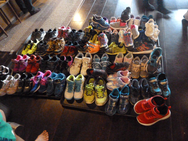 We got to tour one of the houses and we were set to go upstairs and check out the cool roofline when a school group swarmed in and took over. There were so many of them and the stairwell was so narrow that I never got upstairs and so I offer this picture instead. This is how they stored their shoes to go upstairs. They walked in one by one, placed their shoes in this very tidy fashion, and went on their way. I cannot imagine a group of American schoolchildren doing this.