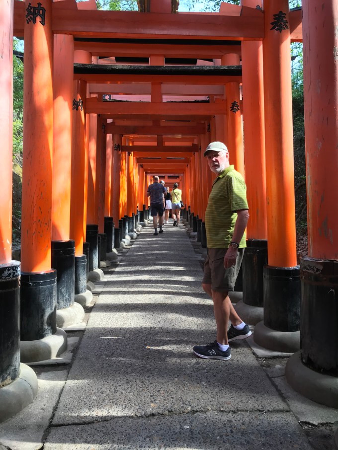 We also stopped by Fushimi Inari shrine. There’s some information to be gleaned about good luck in relation to all these orange pillars, but I had turned off my Whisper hearing device due to shrine information overload and so I cannot tell you more than that.