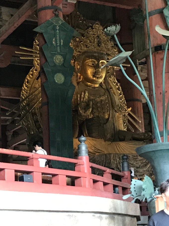 On our last day of touring we were taken to Nara, which is a town with a gorgeous Buddhist temple – Todai-Ji Temple. This building is from 1692.