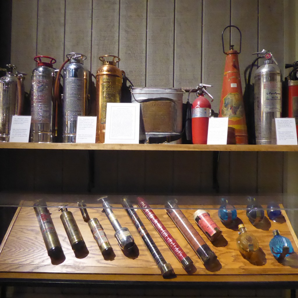 There was also a fire extinguisher collection from over the years, which thrilled me in the same way as the toaster collection. The ones at the bottom right look more like Molotov cocktails to me – and thus the opposite of fire extinguishers – but who am I to question.