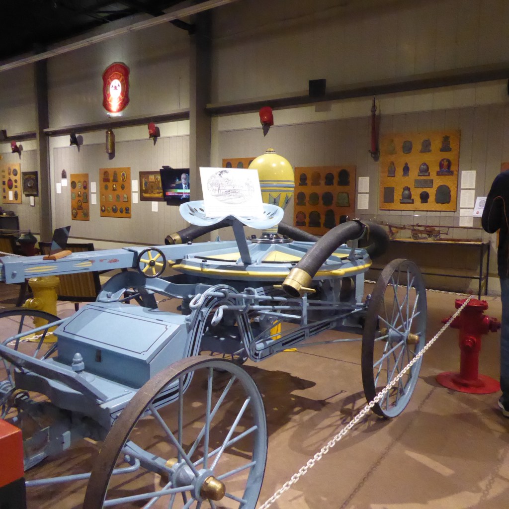 I think Ron had his doubts about this stop but it had all the markings of a fine museum – a single focus site, started by an overzealous collector. George Getz started collecting fire apparatus in 1955, after his wife gave him a 1924 fire engine for Christmas, setting a standard for gift value/uniqueness that no wife should take on. (Compare: for Valentine’s Day, I gave Ron a Ravensburger puzzle that I really chose for myself, along with a chocolate bar that I ate while I did the puzzle).