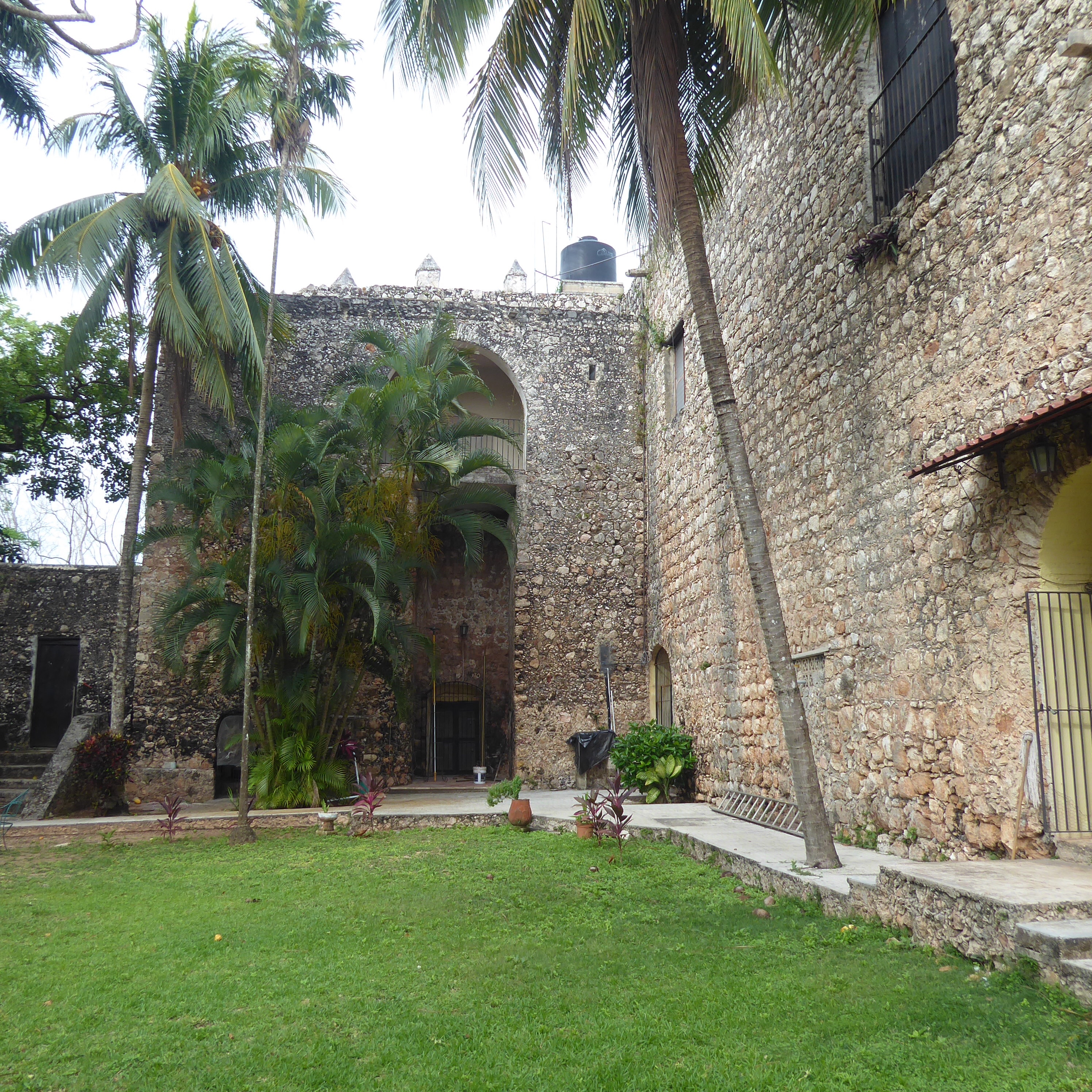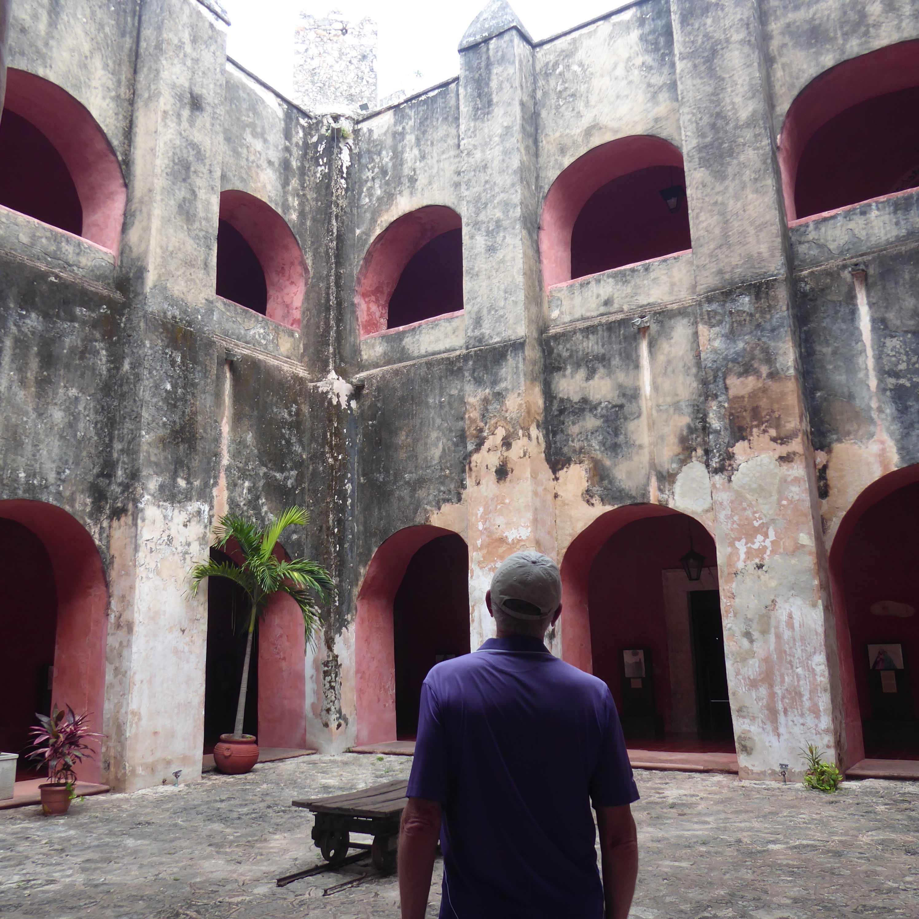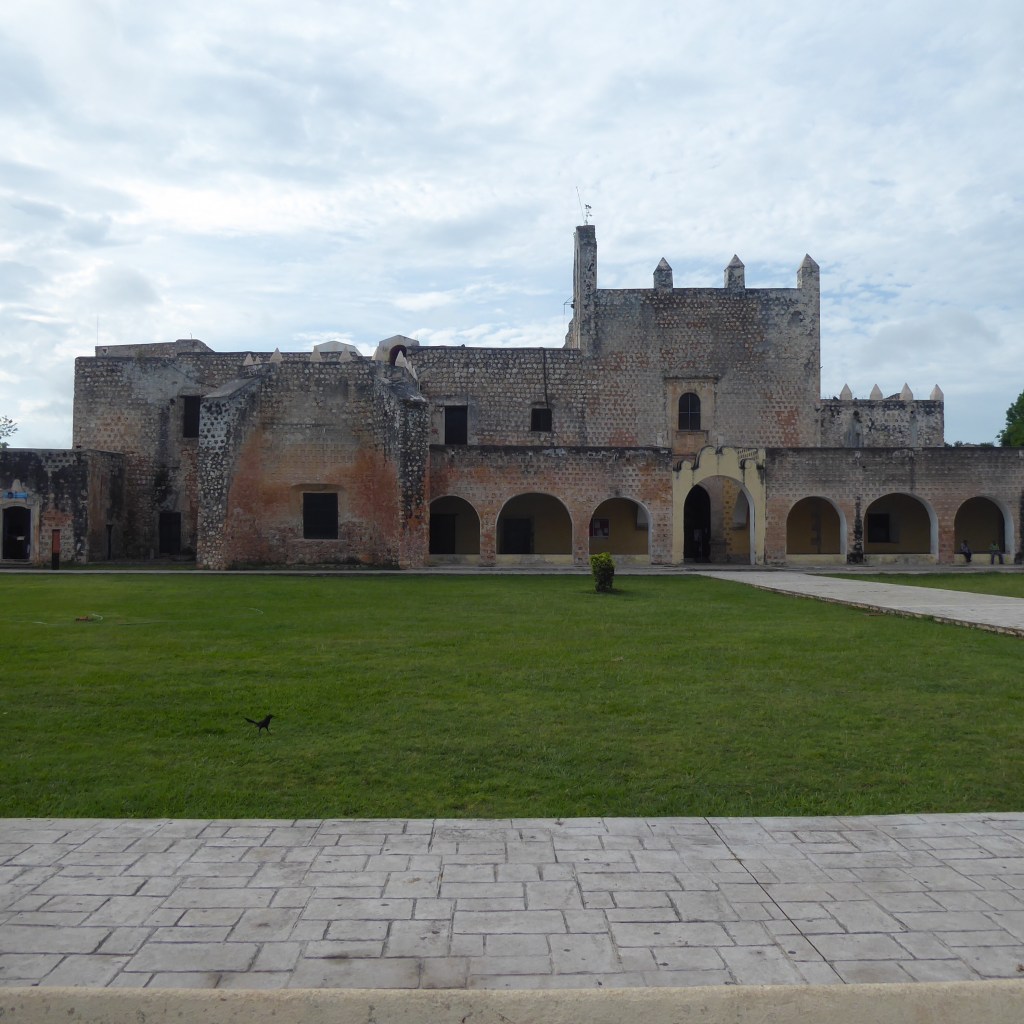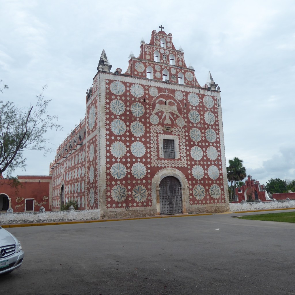 At some point, Daniel asked us if we wanted to take a drive with him to a little village called Uayma that has a gorgeous church, and as we had no need to stop for lunch due to the well-stocked van, off we went. Uayma was an important city for the Mayans (not sure why) and so when the Spanish took over, they felt it was important to build a significant church to mark their impact. Here’s the church, from 1642: