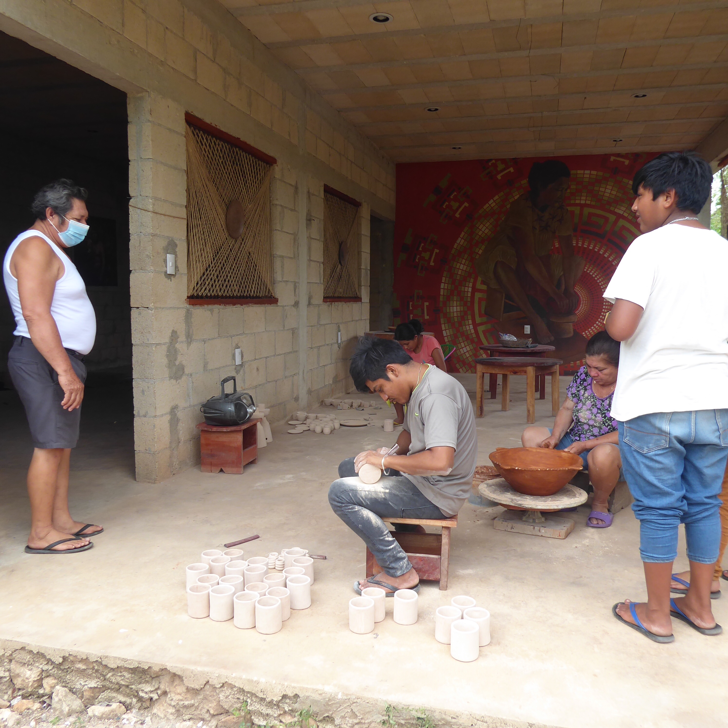 Roberto has a dream of becoming a tour guide, and enterprising young man that he is, he’s working that idea diligently, hanging out on the main square of Uayma, population 2300, facilitating traffic flow to his grandfather’s artisanal Mayan pottery studio. Here’s a few shots from the studio, where three people were working, hand forming bowls and pots: