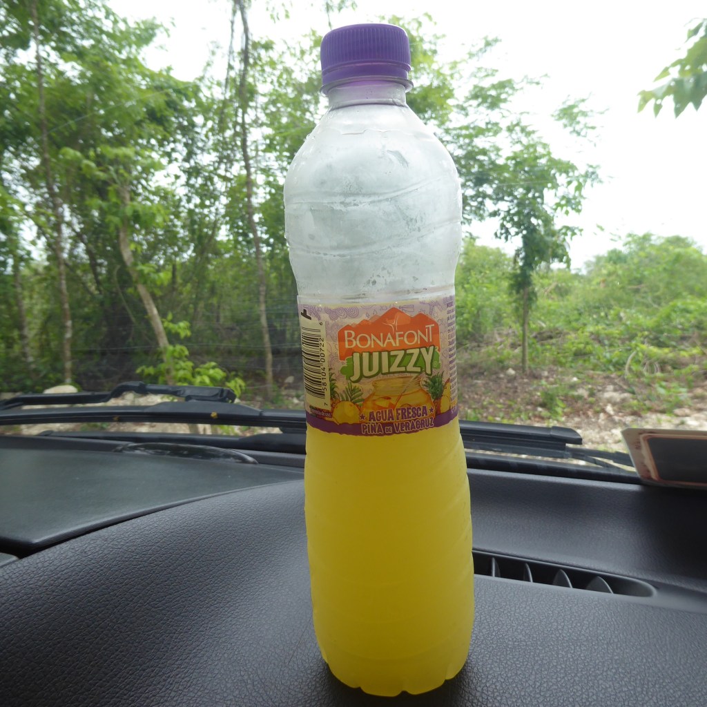 I’ll pause here to give you a little break for you from all this history…as we were all so hot and sweaty at this point, given the 95 degrees, the face masks, the steps etc…I offer up a photo of my favorite Mexican cooling beverage. Pineapple Juizzy, which I think means Pineapple Juice in the same way that Cheese Whiz means cheese, if you get what I mean.