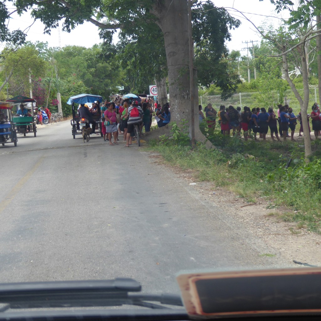 One thing that is nice about traveling around with Daniel is that he will stop anywhere, for anything, and no question is too stupid for him to relay upon our behalf. Today he pulled over in some tiny village to ask about a line of about 100 women, standing in front of a school, each holding a picture of their government ID. They were waiting for a free bucket of corn meal that was available today.