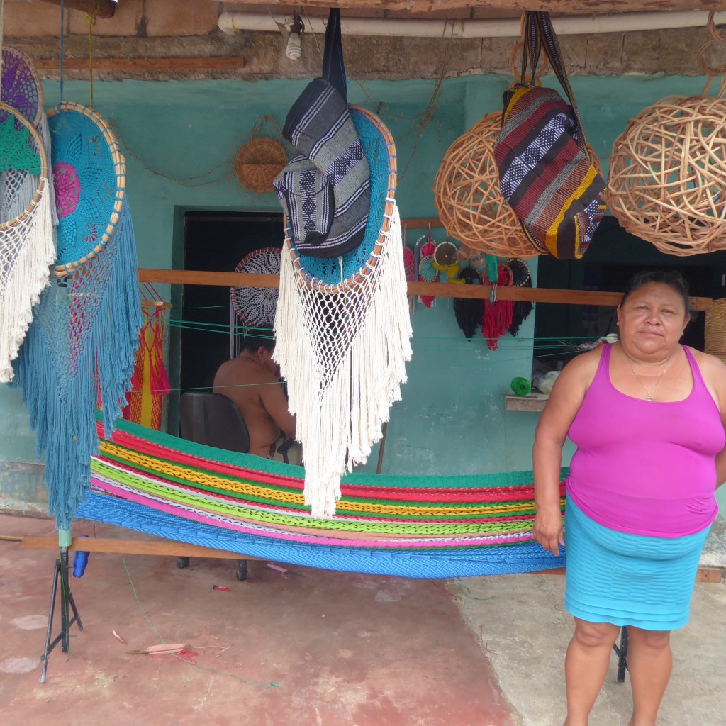 Then, he stopped the van in front of some tiny home so that we could get out and ask a hammock weaver some questions: