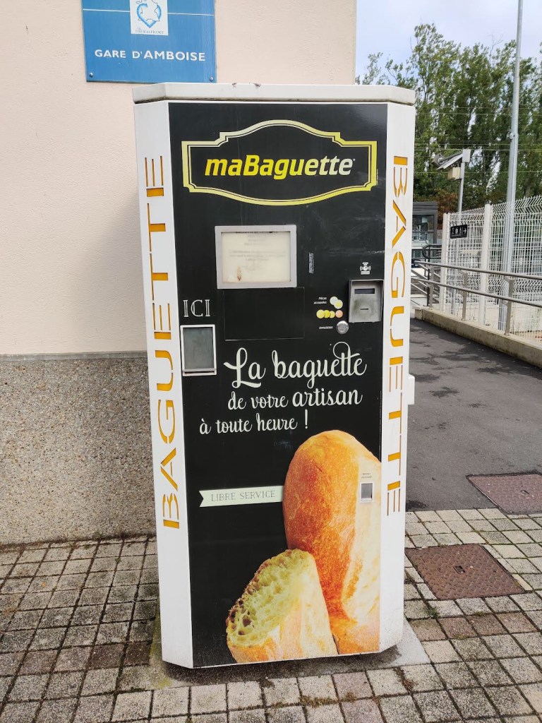We’re in Amboise now, with two days of chateaux to visit. The above picture is a baguette vending machine at the train station, and should have been an indicator of how serious the baguette business is here. We had a couple of hours before we got access to our apartment and so we planted ourselves at a cafe and watched people purchase armloads of baguettes from a line that was always 15 deep, more and more and more bread, until the shelves were bare and the cafe closed.