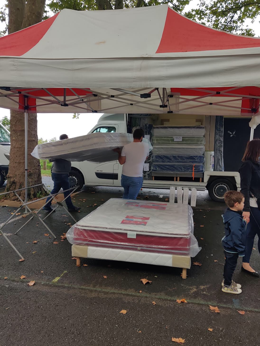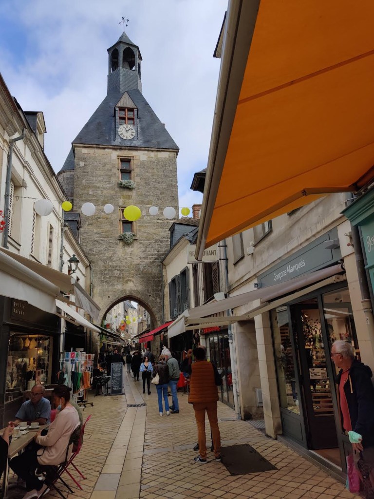I’ll leave you with these pictures. It’s our first view of Amboise as we walked in, followed by two shots from the famous Sunday market, where you can buy both a live chicken and a full size mattress!