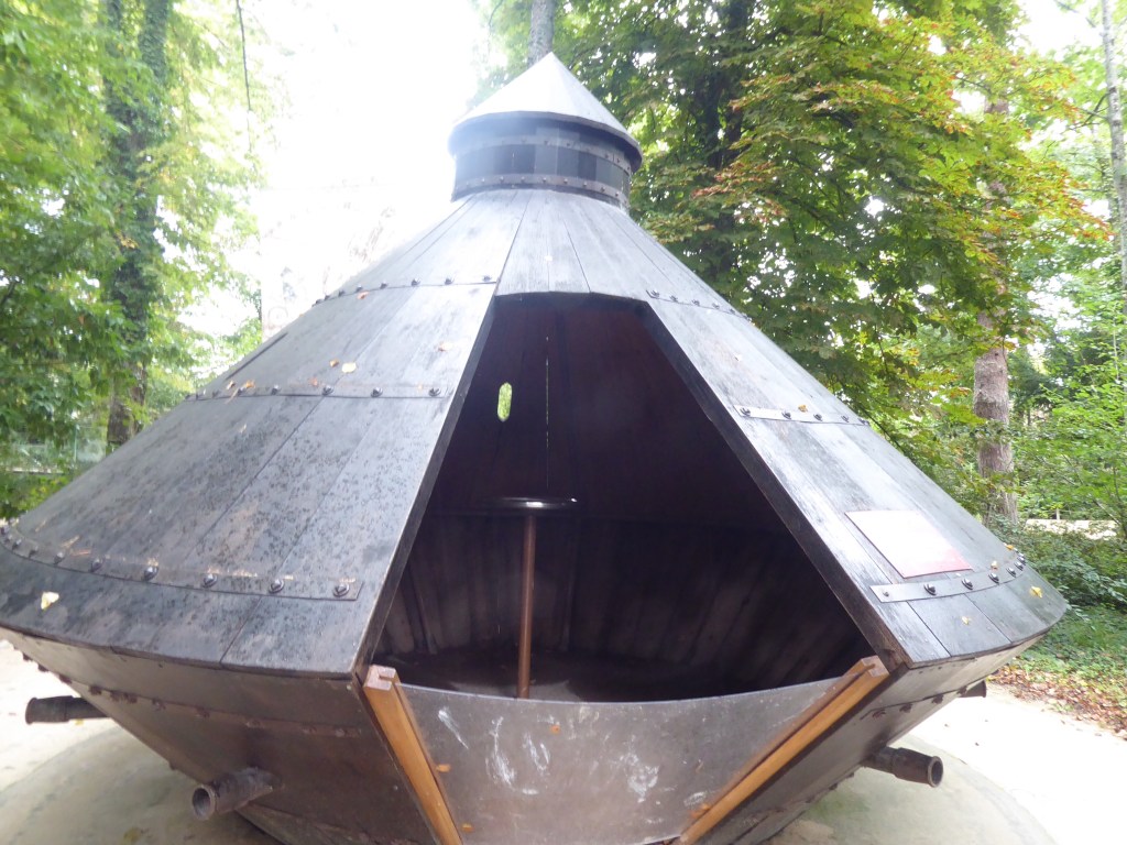 And then once you start walking the gardens, you enter the Park at Clos Luce and there are full size models of da Vinci creations scattered around. Like my favorite one – this tank: