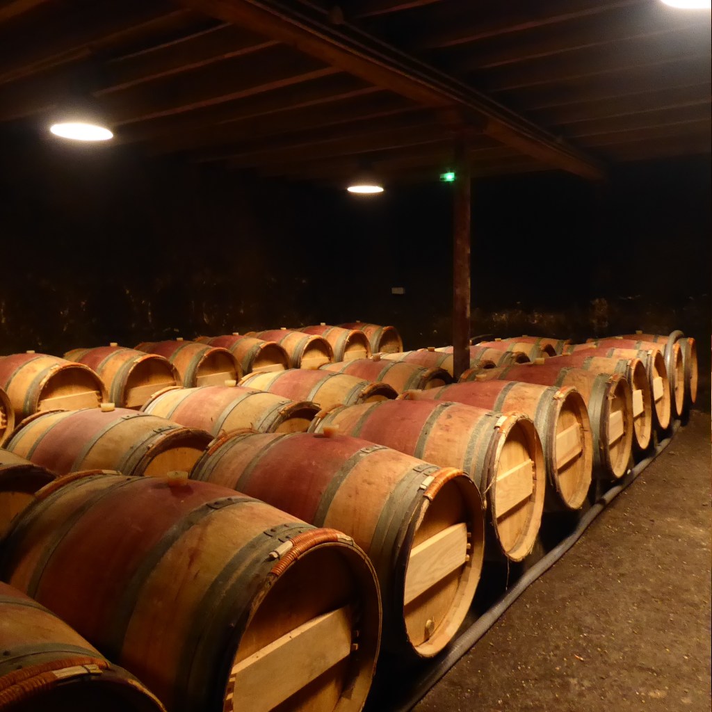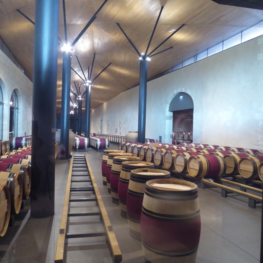 Below is the only picture I took at Baudan, which shows their cellar full of barrels. They buy used barrels from other wineries to age their wine. A new oak barrel easily costs about 900 dollars or more while a used one is about 50. A barrel of wine holds about 300 bottles of wine.