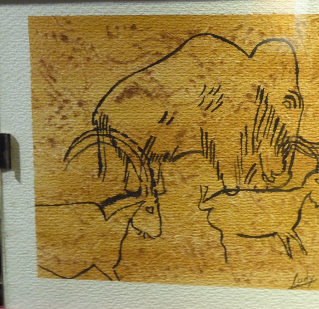 There are only horses, wooly mammoths, bison and ibexes, with a total of over 250 drawings. Here’s two I took from pictures at the entrance: