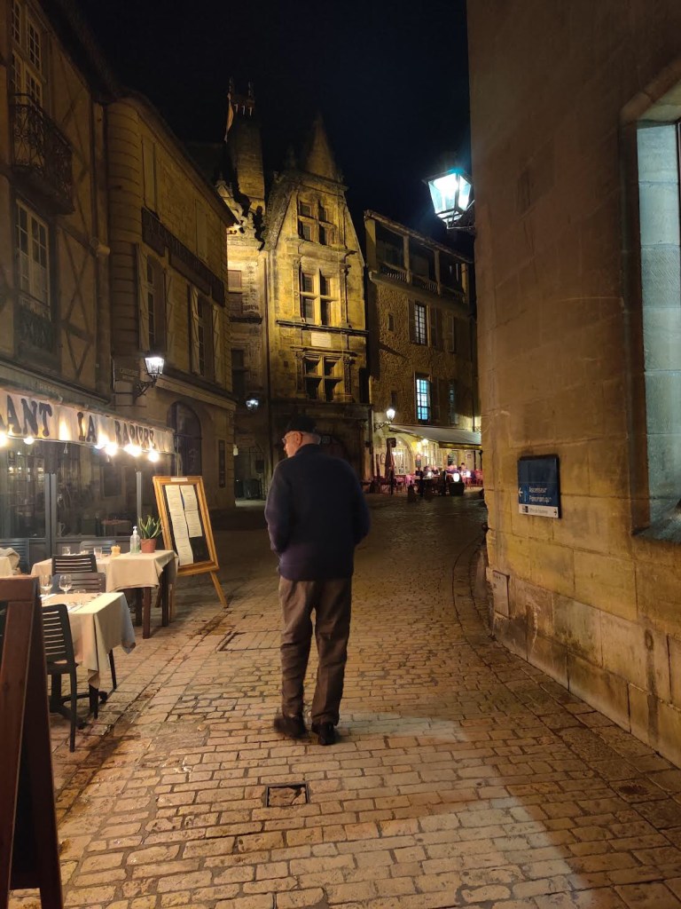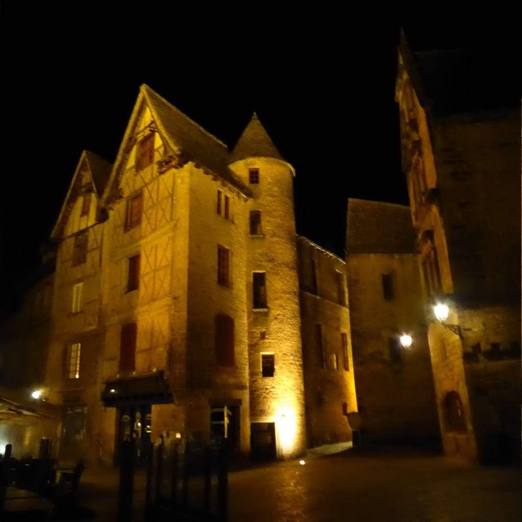 Now we’re in Sarlat for three days. I haven’t seen much yet but I did get a couple of pictures as we walked to dinner, which occurred a mere four hours after lunch ended.