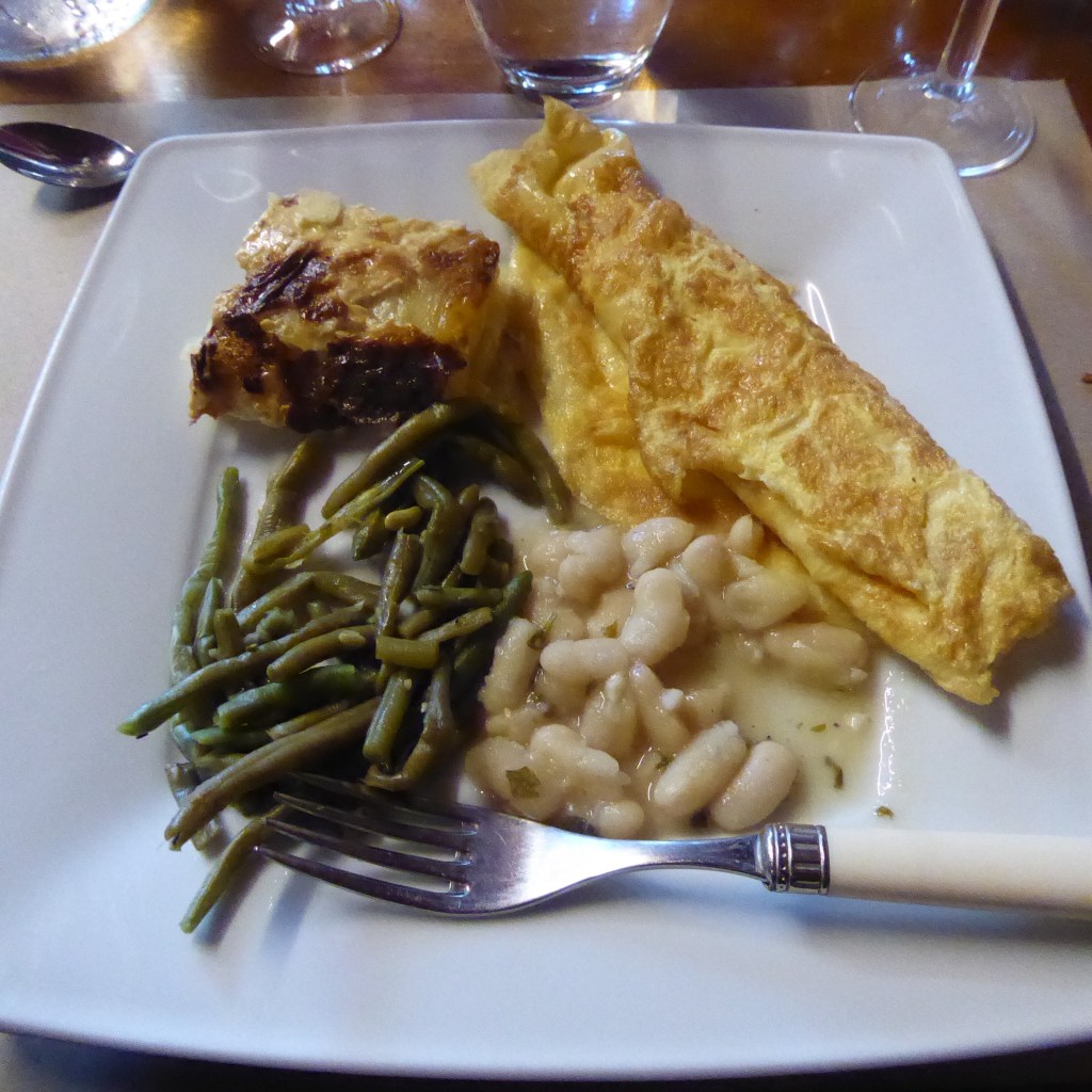 And this is the lunch I was served. I will allow that the French know how to cook a nicely-browned omelette. Ron was given some dark meat chicken again at this meal, and, once again, I had to share my omelette with him. Now he has given in and changed over to vegetarian meals for the remainder of the trip. Ron wonders – and rightly so – what the Citizens of France do with the lovely white meat chicken breasts, because all we see is drumsticks.