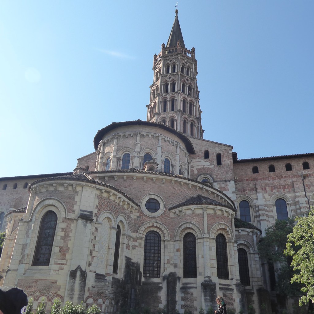 For our last tour outing, we went to Carcassonne, which I’ll cover in a minute. But first you need to see this cathedral in Toulouse. It’s the Basilica of Saint Sernin, from the early 12th century. It’s a major stop on one of the pilgrimage routes to Santiago de Compostela, Spain. I liked it because of the stark contrast between the earlier-built sides of the building vs. the latter-built. The cathedral was constructed over four building campaigns, with ever-increasing usage of less-expensive local brick. Here’s the gorgeous east view: