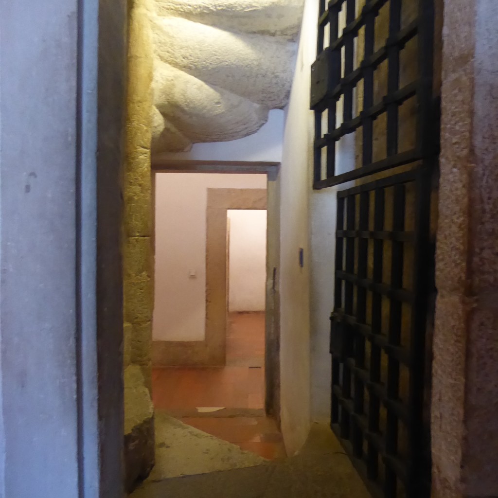 Two things from our tour that stuck out for me: 1) there is a colony of bats that lives in the library and so, every night, all of the beautiful wood tables are covered to protect the surfaces and 2) the university has historically operated as an entity separate from the city of Coimbra and, because of that, has a “university prison” that exists in the passageways under the library. It was used for students who got into a modest amount of trouble: drinking, carousing, disorderly conduct. The more serious crimes were handled by the city police.