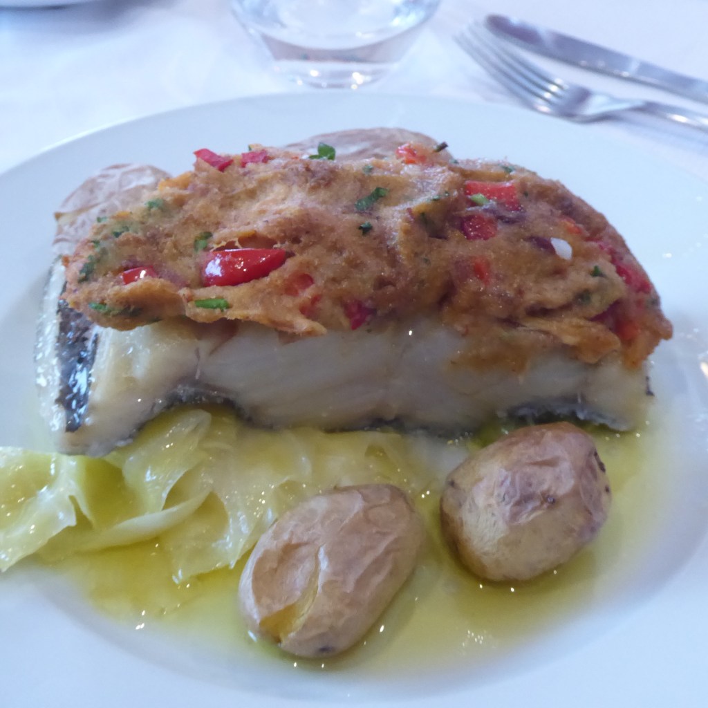 From the university, Mayra took us over to see a Fado performance. Fado is a genre of music that originated here in Coimbra, using Portuguese acoustic guitars and and male singers. Famished, as it had been four hours since breakfast, the braver souls on our tour were then given this massive fish lunch and Ron, who moved to the vegetarian ranks days ago, was extremely relieved to see our pasta.