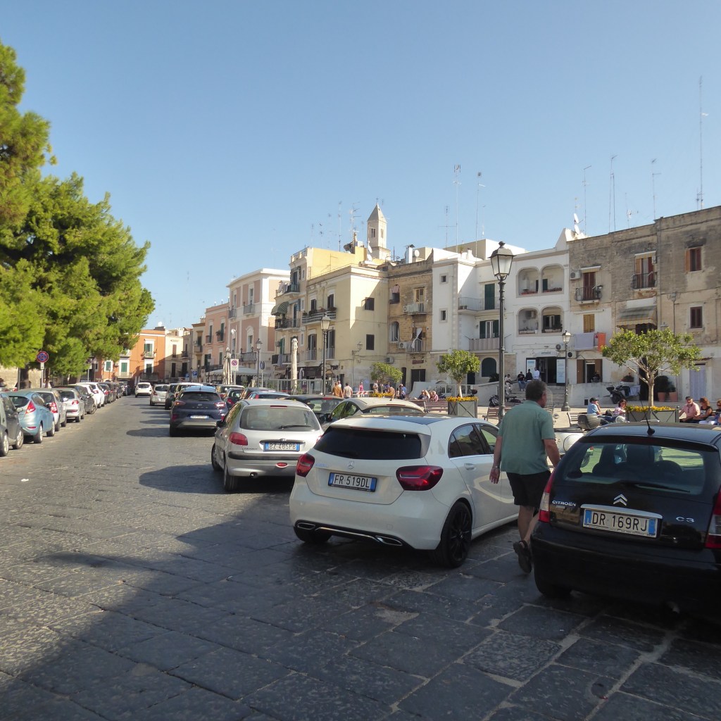 I liked this picture below as it gave a sense of the driving/parking rules for Bari, which are (obviously) meant to encourage maximum commerce. It’s all good – angled, parallel, double parking – just leave your car where you see fit and go about your business.