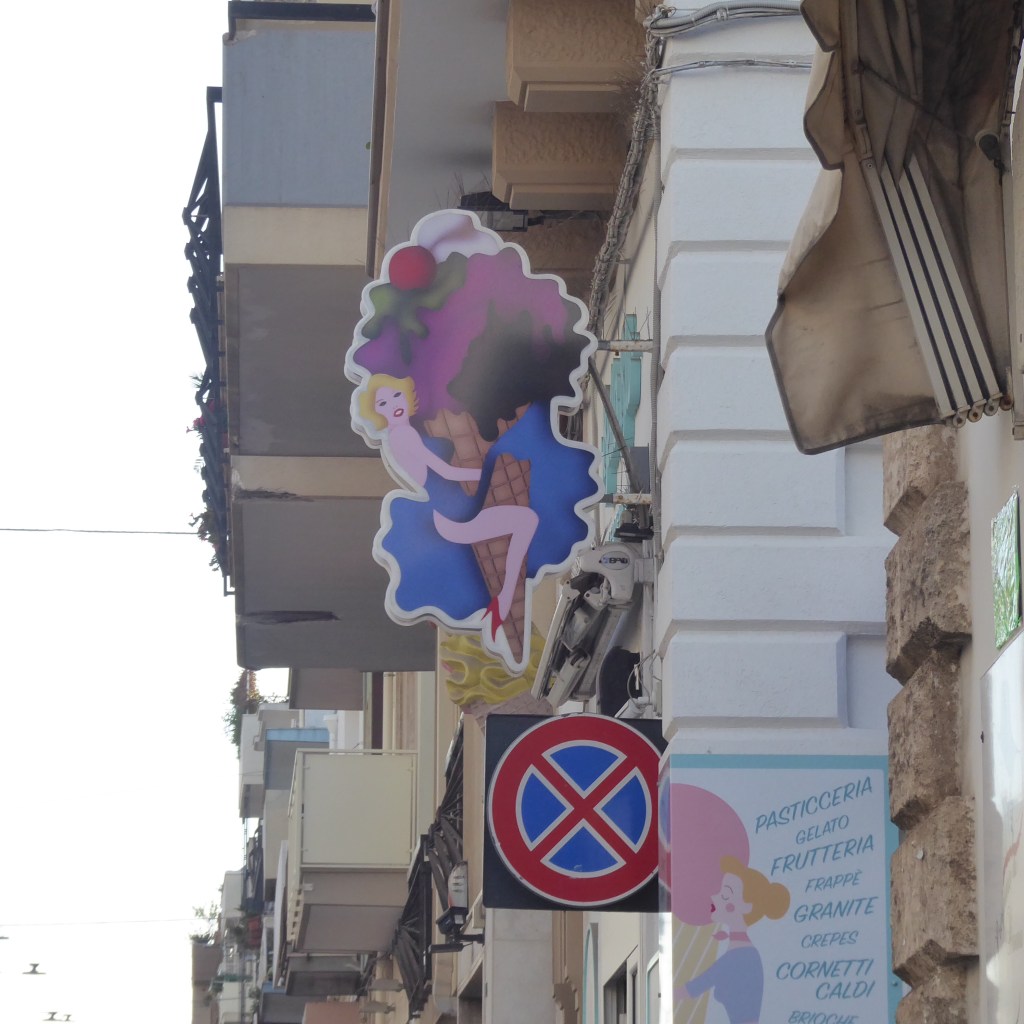 3) Bonus question: how much did this gelato store in Polignano a Mare pay an advertising agency for their logo?