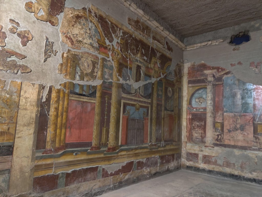I have one last travel stop to share. We got off our Naples-bound train in Salerno and had Aldo Limos pick us up for two quick stops. I wanted to see two villas that I had read about – both buried in the mud in AD 79 when Mount Vesuvius erupted. They are Villa di Poppea and Villa San Marco.