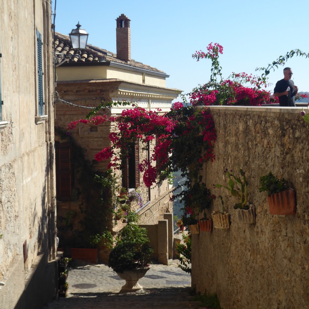 Here’s Ron entering the 11th century castle at Santa Severina and a charming courtyard: