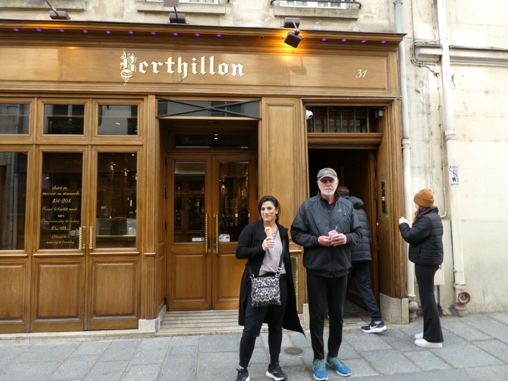 Now that I have had Berthillon ice cream once, I aim to eat it every day I’m in Paris. Because I am an excellent travel host, we waited until Sam arrived and, after 18 hours of flying time and a 9 time zone change, we gave her ten minutes to brush her teeth and throw her luggage down in our room and walk over for a cone: