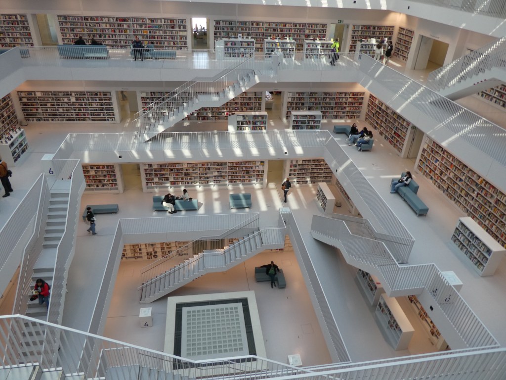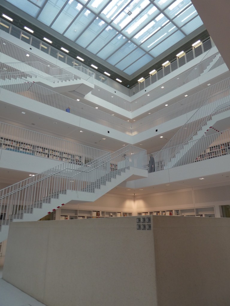 From Porsche, we set out to see the Stuttgart Central Library. Although this stop has been on my itinerary for months, as we traveled over, Ron peppered me with questions about why we were going there and what we were planning to see. For a congenial man, he sure does have a pointed way of expressing his displeasure!!