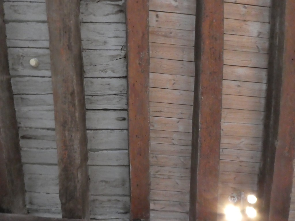 Inside, the castle has displays of armor and old weaponry but I thought this was pretty interesting. It’s a ceiling connection where you can see original castle on the left – that survived the war – right next to rebuilt ceiling: