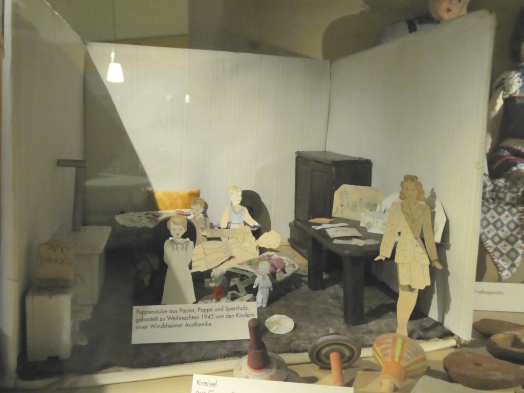 I think what made these doll house displays so interesting is that, later on in the museum, there was a display called “Rubble Toys”. And these were the toys that children had after the WW2 destruction of their city. They were just such a stark contrast to the elaborate toys prior to the war. Here’s a Rubble Toy doll house from 1945: