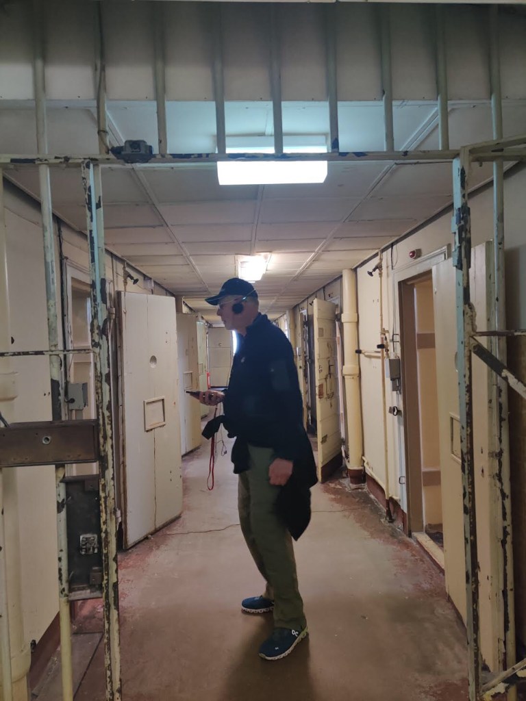 We also popped into a Stasi Museum. It gives a great overview of the division of Germany in 1949 and the rise to power of the Stasi. The museum has left the building partially intact as a prison. Here’s Ron in a prison wing: