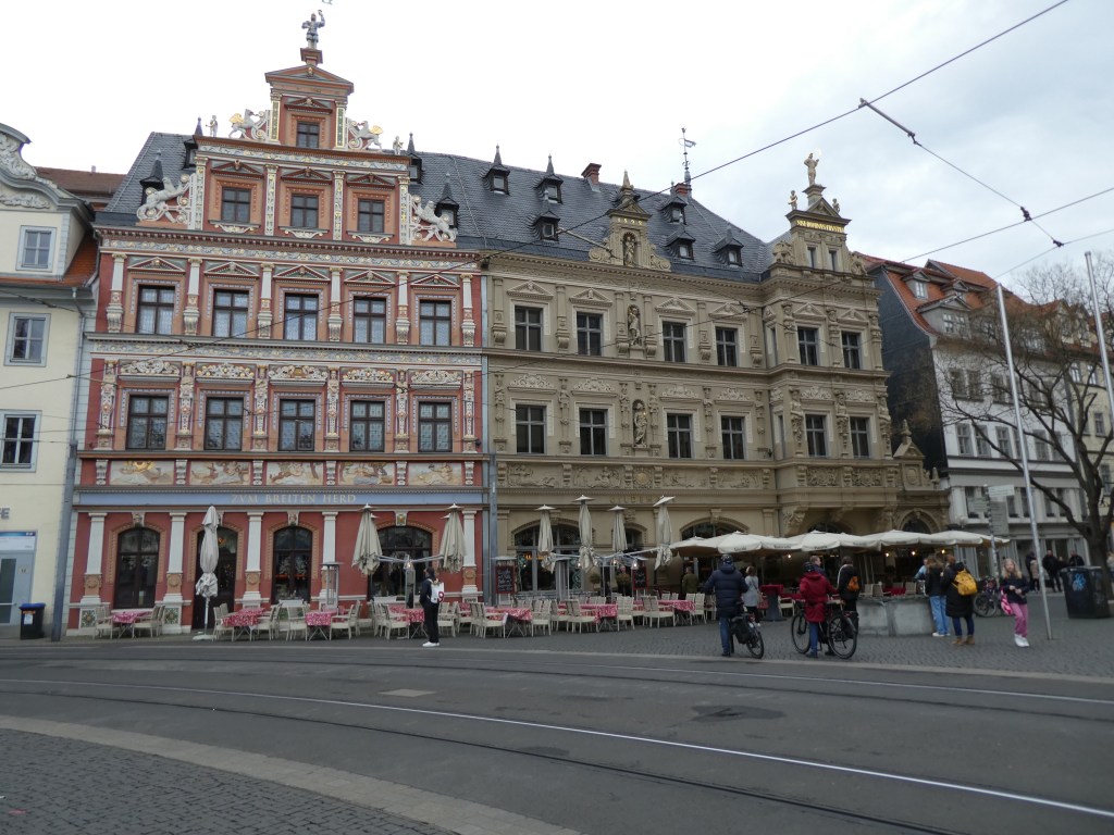 Erfurt sustained limited damage in WWII and our first stroll around the city really provided a contrast to Stuttgart and Nuremberg, which were largely rebuilt. Of the 54 largest cities in Germany, only 4 survived without significant damage – and Erfurt was one of those 4.