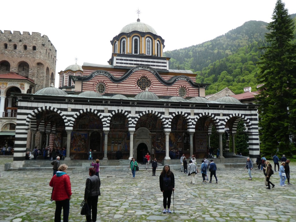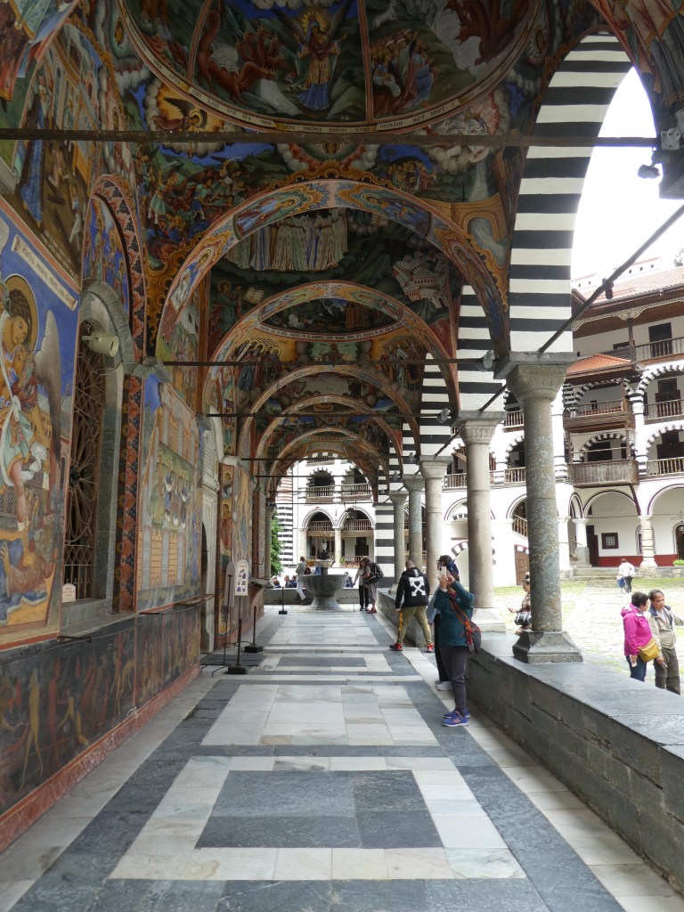 Rila Monastery is probably the top tour site in Bulgaria. It’s the largest Eastern Orthodox monastery in Bulgaria. It dates from 927AD and still houses about 60 monks according to Wikipedia but only 6 monks according to our guide Yurdana. We looked around really diligently and only saw 2.