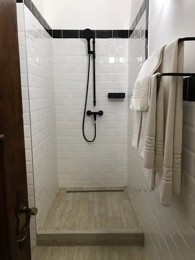 The worst thing about the “art” in our hotel room is that I think they blew the construction budget on it because our shower is simply open to the bathroom, no curtain, mini-wall, drain etc…the funding must have been depleted. It is as if they are strongly suggesting that – as we shower – we simultaneously wet mop the bathroom floor for them. (Additional note: now that we know our tour members better, we have queried the troops and everyone reports that they have a different bad shower: some have a tiny capsule you can’t turn around in, some have a super high old tub to fall out of…and you have to kind of admire the Hotel Sighişoara for their commitment to bathing impediments.