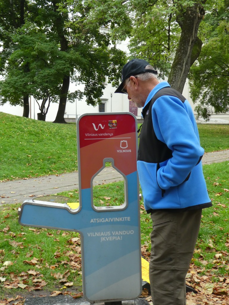 Here’s Ron inspecting a public water fountain/bottle filler in the park (note rare sign not in English, but we sleuthed out how to use it):