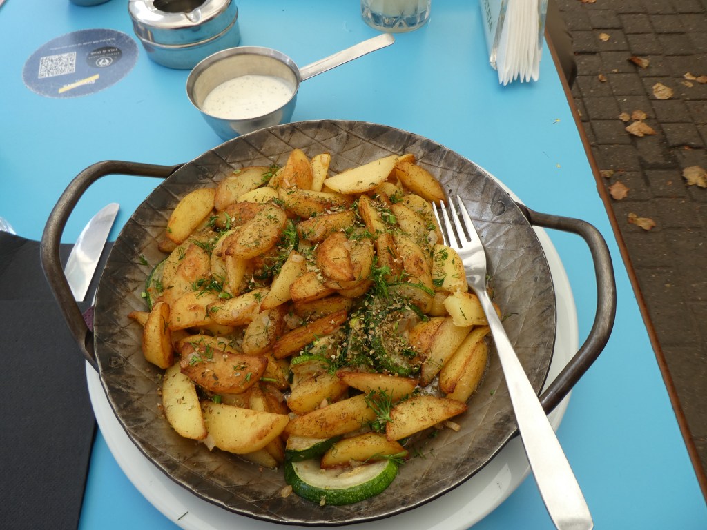 We stopped for a mid-stroll snack and I was served this potato and zucchini dish. I have been told that this is the land of potatoes and that’s going to make the eating here a high point: