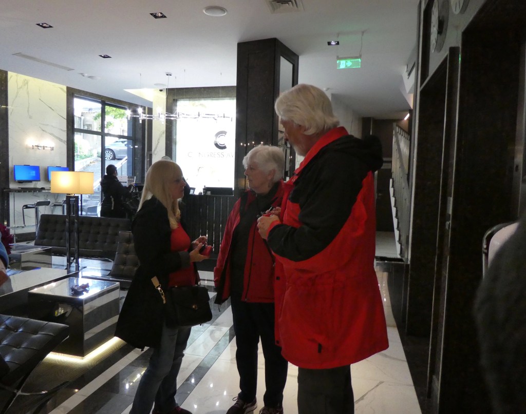 Here’s Aida – giving early tour instructions in the lobby…along with…surprise…our neighbor from home, Alan! We love it when people meet up with us in Europe!