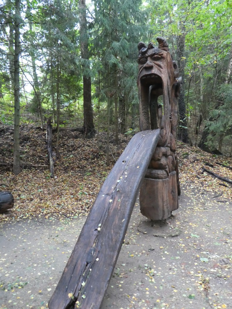 Our OAT bus also stopped at The Hill of Witches on the Curonian Spit. The Hill of Witches is an outdoor sculpture gallery from 1979, when folk artists gathered to carve characters from Lithuanian folklore. I’ve come to realize that – although I didn’t understand the appeal of the Louvre – a walk through a lot of whimsical yard creations reminds me of my solid ability to appreciate fine art.