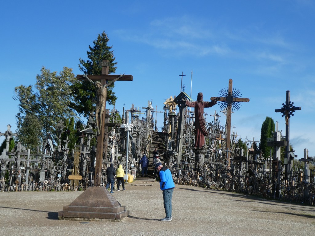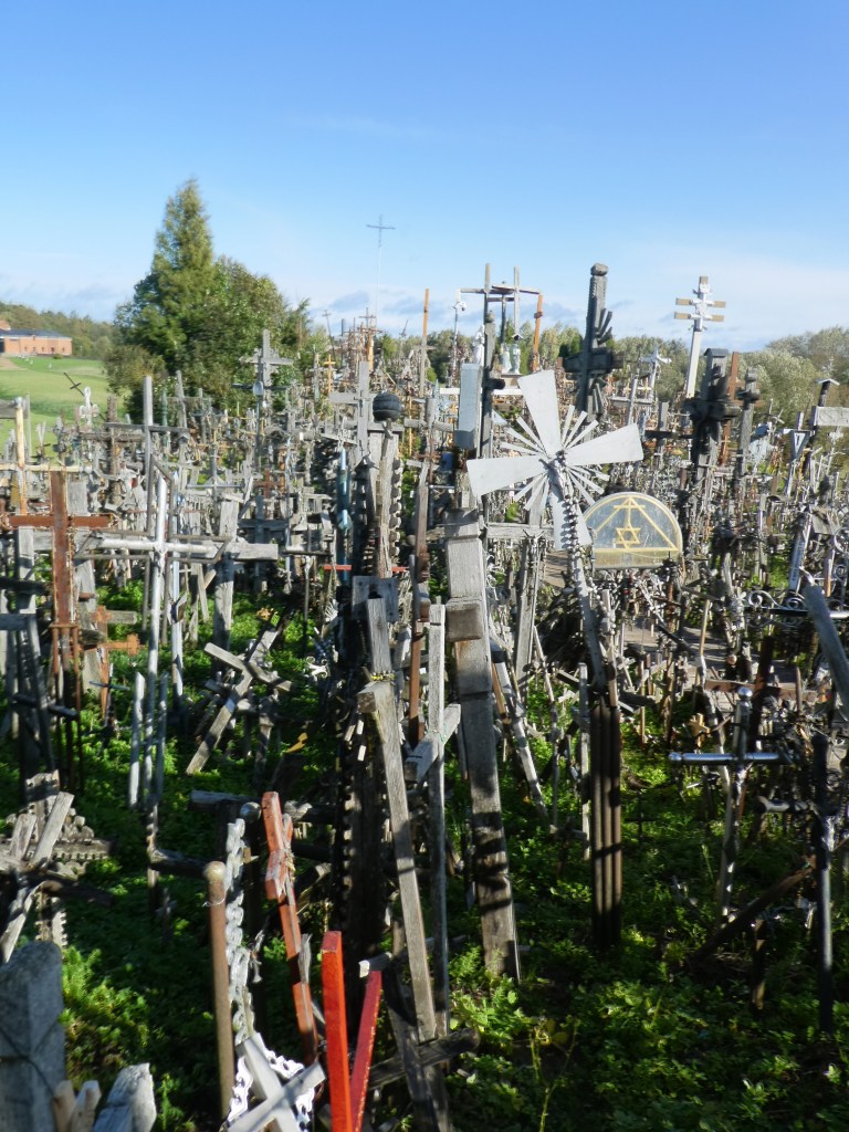 All right, we’ve clearly covered the art that this post title promised. But the religion? We made a quick stop at the Hill of Crosses, which is a Catholic pilgrimage site. The site gained extra significance during the Soviet occupation as Lithuanians used it to show their allegiance to their Lithuanian identity and religion. The Soviets bulldozed it at least 3 times. Here it is today – with over 150,000 crosses:
